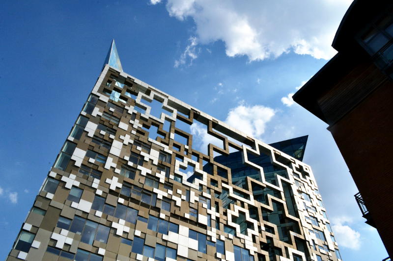 Approaching the city centre, the Cube comes into view
